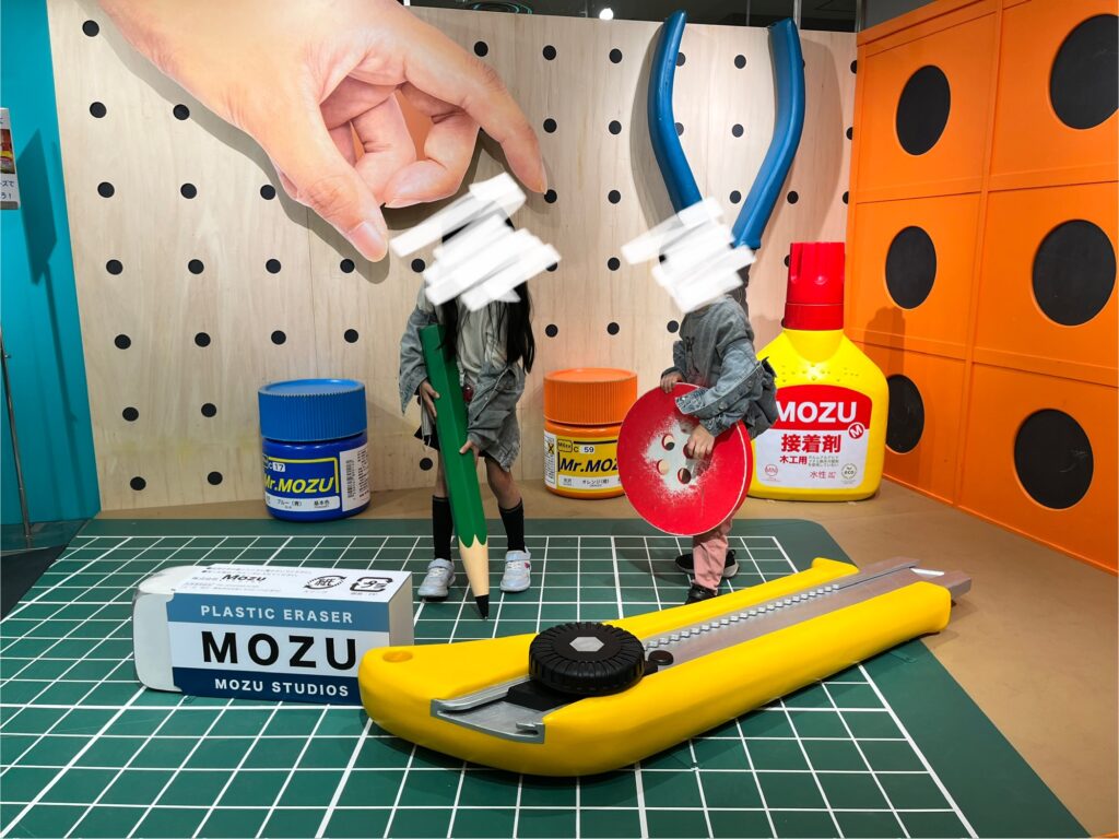 展覧会の記念にもなりますし、Mozuの世界観を体験できるとても楽しいフォトスポットなので、思わず子どもも笑顔になるでしょう。