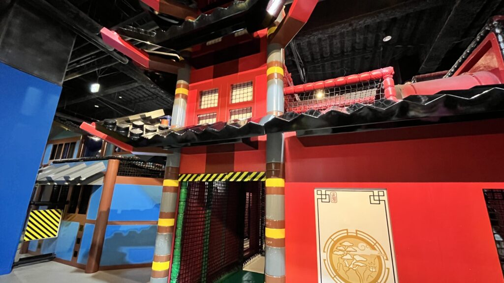 レゴ®ニンジャゴーシティアドベンチャーは、忍者のからくり屋敷をイメージしたアスレチックで、からくり扉や反射神経を鍛えるマシーンや壁から発射されるレーザー光線をよけながら進むマシーンでトレーニングするコーナーがおもしろいです!