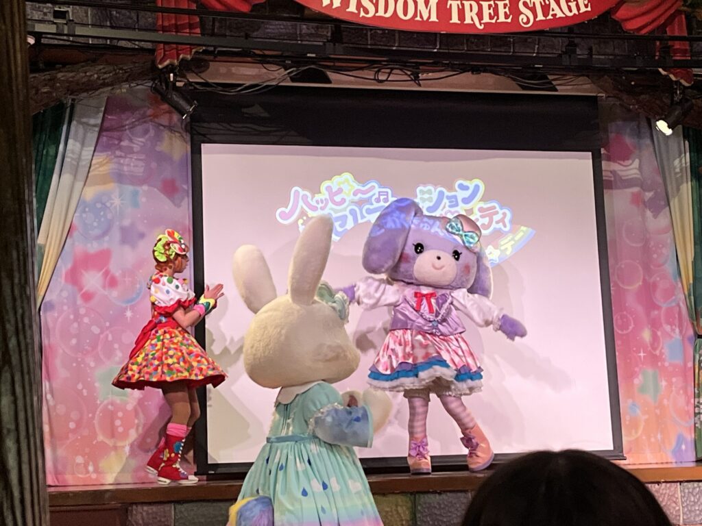 お誕生日記念に来たお子様には、9:30からの『ハッピーセレブレーションパーティ』というショーで、ステージ前で踊ることができます。