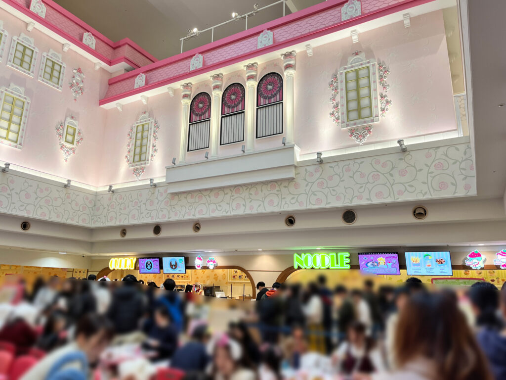 4階にあるサンリオレインボーワールドレストランは、まだ席数が多いので座れるのですが、地下1階にあるキャラクターフードコートに行きたい場合は席数が少なめで人気のレストランなので時間は注意です!